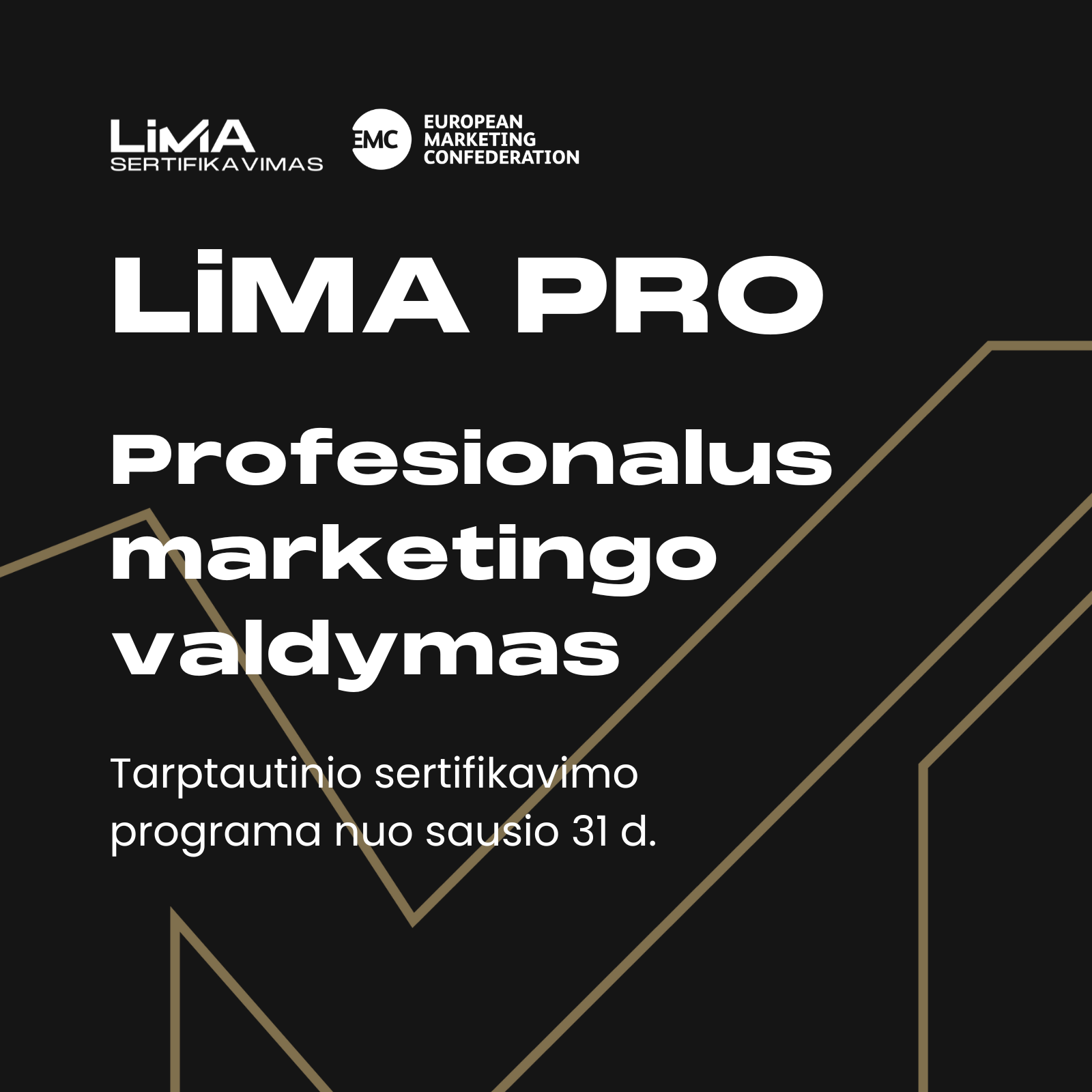 LiMA PRO profesionalaus marketingo valdymo kursai 5 mėn. trukmės vadovų programoje, parengtoje pagal tarptautinius profesinius standartus: ✔ Kompleksinių marketingo valdymo žinių visuma: nuo strateginių sprendimų iki taktikos planavimo; Programa suteiks gilesnių žinių, kaip į marketingo veiklą integruoti AI, duomenų analitiką, padės ugdyti vadovavimo kompetencijas ir semtis žinių iš lektorių, savo srities profesionalų bei kursų kolegų iš įvairių sričių. Grupė startuoja nuo sausio 31 d. Daugiau apie LiMA PRO čia → |